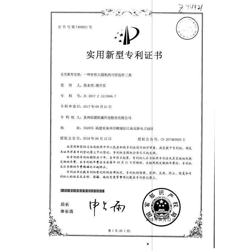 新型-一種針織大圓機的可控選針三角